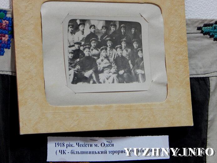Интересно, а жители после того как их родственников обозвали террористами, понесут свои фото в музей. ЧК важную роль выполнял не просто с контрреволюцией боролся, а с преступностью, саботажем и самое главное со спекуляцией. В первые годы советской власти большевики не были единственной политической силой, в ЧК служили и эсеры и даже анархисты. Я напомню что Одесская городская дума не признала универсалов Центральной рады, как органа не легитимного, не признавала она и Советы. Одним словом в музее у нас одни “профессионалы” работают за долю малую, стыдоба.