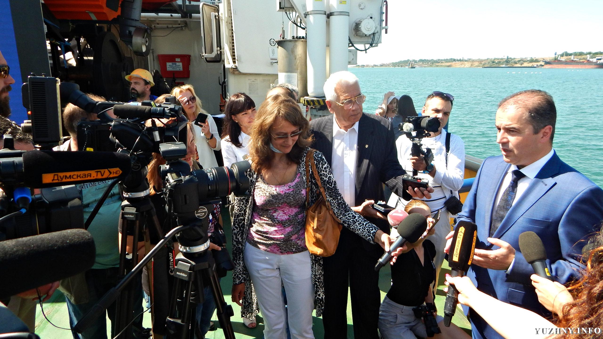 На государственном предприятии «Морской торговый порт «Южный» подвели итоги работы за первое полугодие 2020 года и стоит отметить, что госстивидору есть чем гордиться. За эти шесть месяцев удалось достичь исторических максимумов, которые еще несколько лет назад казались невозможными: рост показателей перевалки грузов до 10,6 млн тонн (+61% к показателю аналогичного периода 2019 года), суточная норма выгрузки (31 мая – 959 единиц) и суточная норма обработки полувагонов (1 056 единиц). Коллектив порта обработал 144 545 полувагонов (+46%). О деятельности порта, стратегических планах и рекордах портовиков в рамках пресс-тура и.о. директора ГП «МТП «Южный» Александр Олейник рассказал представителям местных и областных СМИ. Ежегодная пресс-конференция с журналистами в этот раз, 17 июля, состоялась в новом формате – в виде морской прогулки по акватории порта на буксире «Владимир Иванов». Сюрпризом для средств массовой информации стал зрелищный вальс буксира. Следующим пунктом экскурсии для ознакомления с деятельностью предприятия изнутри был причал №5, где в настоящее время обрабатывается очередное судно.