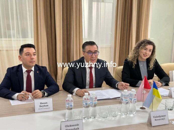 Сьогодні з офіційним візитом до Південного завітав Генеральний консул Туреччини в Одесі пан Мухіттін ЧЕЛІК у супроводі аташе Хасана СЕЙХАНА та секретаря-перекладача Ярослави УСАТЕНКО.