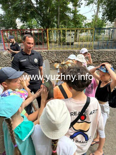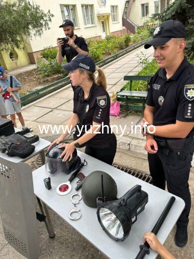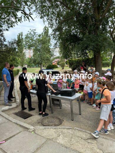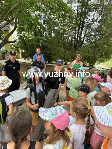 Зустріч з дітлахами проводили інспектор ювенальної превенції капітан Вікторія Седько спільно з поліцейським офіцером капітаном громади Сергієм Лисом. Поліцейські розповіли маленьким гостям про специфіку своєї роботи, призначення спецзасобів і засобів індивідуального захисту, які правоохоронці використовують у своїй роботі, гумових кийків, наручників, бронежилетів та шоломів. Під час бесіди діти не тільки бачили все на власні очі, а й мали можливість приміряти екіпірування поліцейських та навіть посидіти у службовому автомобілі поліцейського офіцера громади