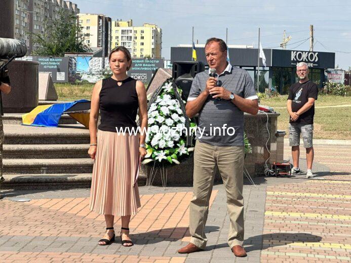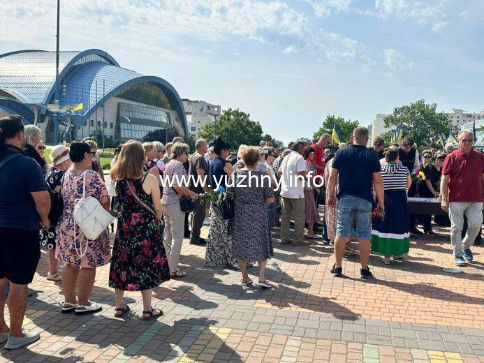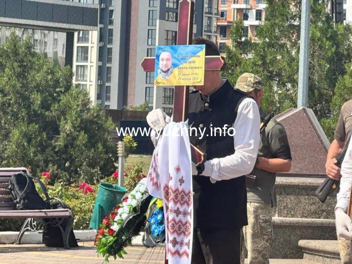 Церемонія прощання відбулася на площі Перемоги біля пам’ятника Захисникам Вітчизни. Вшанувати пам’ять загиблого прийшли його рідні, близькі, друзі, побратими, колеги, мешканці громади, а також представники міської ради та виконавчого комітету.