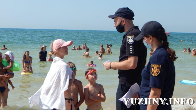 С начала периода летнего отдыха и оздоровления детей, полиция начала всеукраинские профилактические мероприятия под условным названием «Безопасное лето». В целях профилактики детской безнадзорности и предупреждения несчастных случаев на воде сотрудники ювенальной превенции и группа быстрого реагирования туристической полиции совместно с представителями Южненского сектора ГУ ГСЧС проводят профилактические рейды на городском пляже. Один из таких состоялся сегодня, 30 июля. Правоохранители напомнили отдыхающим основные правила безопасного поведения на воде и на открытом солнце. Призвали взрослых уделять пристальное внимание детям, которые купаются, и раздали информационные листовки.