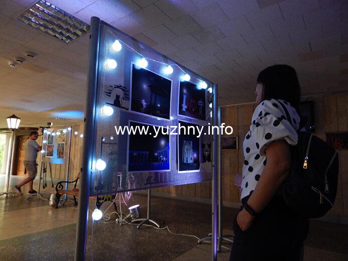 Во Дворце культуры «Дружба» 11 июня состоялось открытие очередной фотовыставки. Каждый раз организаторы удивляют атмосферностью таких вечеров, а фотографы – своими работами. На этот раз публике представили кадры Южного под покровом ночи. Автор работ – Светлана Пасейлюк, которая показала наш город не таким, как мы привыкли его видеть, ведь фотограф акцентировала свое внимание на деталях. Глядя на некоторые фото, не сразу удается понять, где именно они были сделаны. Антураж выставке придали яркие разноцветные огоньки, которые подсвечивали фотоработы в темноте, а также стилизованные лавочки и фонари, установленные в фойе ДК.