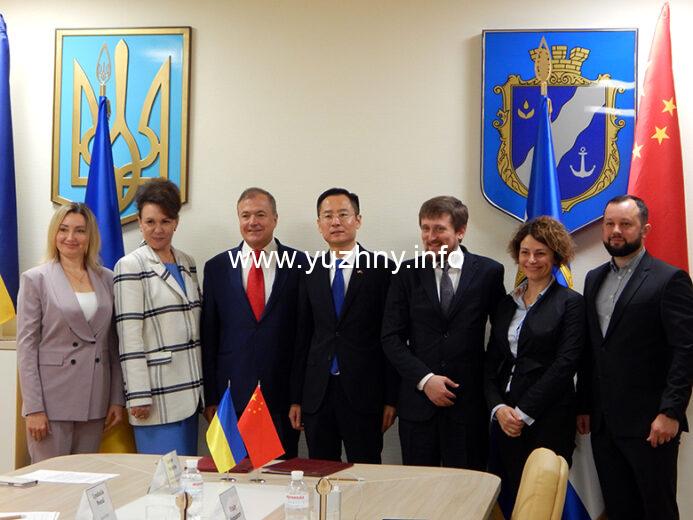Сегодня, 7 мая, в стенах горсовета состоялась рабочая встреча, в рамках которой был подписан договор о сотрудничестве между Южненской ОТГ и Китайской Ассоциацией малого и среднего бизнеса. Во время встречи в прямом включении делегацию поприветствовала заместитель председателя Одесской облгосадминистрации Анастасия Бондар, отметив, что сегодняшнее событие должно принести позитивные результаты для развития Южненской громады и в глобальном плане – для сотрудничества между Украиной и Китаем. На прямой связи из Китая были представители Китайской Ассоциации малых и средних предприятий. Как сообщил в интервью Yuzhny.info прибывший в Южный заместитель генерального секретаря Рабочего комитета Ассоциации Ван Пэн, среди масштабных планов на будущее – строительство выставочного комплекса в Южном.