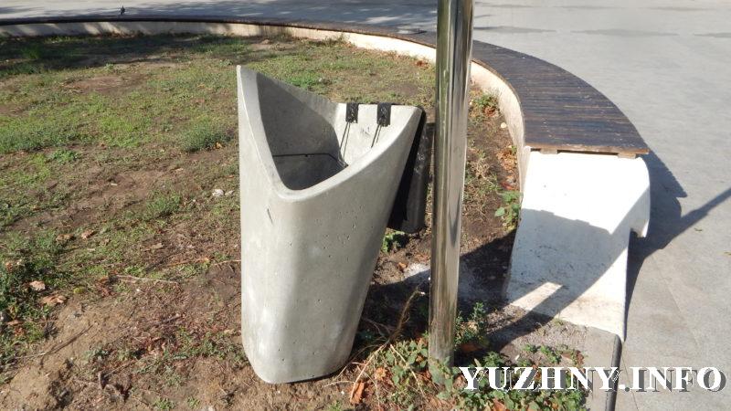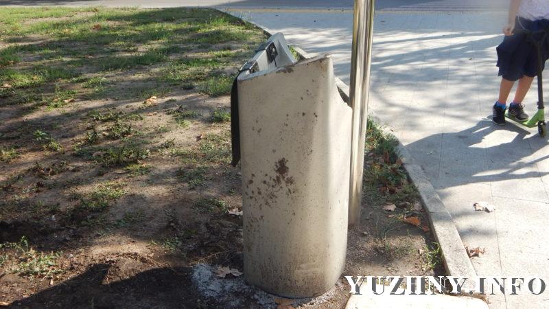 Новые урны для мусора, которые были установлены на реконструированном проспекте Мира несколько дней назад – уже пытались повредить. На аккаунт «Yuzhny.info» в Instagram жительница Южного прислала фото, на котором запечатлела поваленную урну с вывернутой крышкой. В управлении капитального строительства города констатируют, что упасть от ветра бетонная урна (весом около 100 кг) не могла, поэтому убеждены, что это дело рук недобросовестных людей. Уже сейчас некоторые урны обклеены жвачкой и имеют видимые следы повреждения от окурков сигарет.