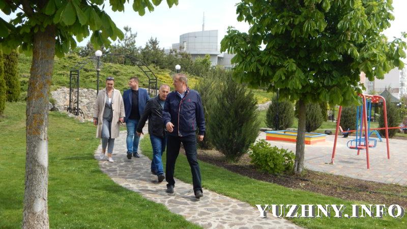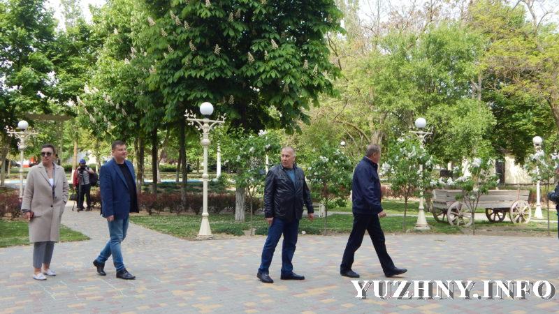 Сегодня, 15 мая, в преддверье нового туристического сезона Южненский городской голова проинспектировал городские скверы. По его словам, делать это намерен систематически и как можно чаще. Первой точкой сегодняшнего маршрута стал парк возле ДК «Дружба» (задний двор). По словам Владимира Новацкого, эту территорию по праву можно считать полноценным сквером и предложил в ближайшее время дать ему название. Свои варианты южненцы могут озвучивать в комментариях под публикацией или на странице городского головы в Фейсбуке. Отметим, что это один из первых сквериков в Южном, куда любоваться ландшафтным дизайном городской голова приводил первые иностранные делегации. Владимир Новацкий указал на то, что необходимо своевременно проводить покос травы, подрезку кустов и постоянно следить за эстетическим видом растений, соблюдая единый дизайн.