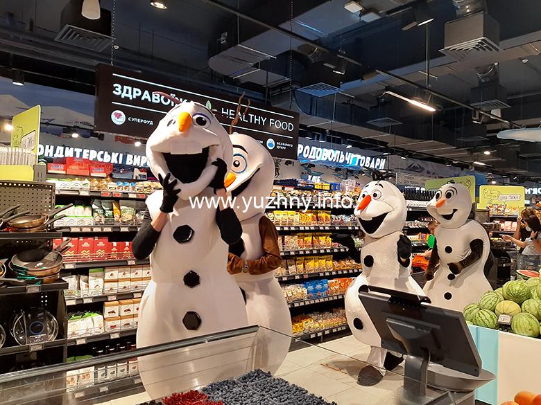 В торгово-развлекательном центре «Волна» по проспекту Григорьевского десанта, 3 сегодня, 20 августа, состоялось открытие «Сильпо». Это одна из крупнейших национальных сетей продовольственных супермаркетов Украины. Основана в 1998 году. Входит в торгово-промышленную группу Fozzy Group. Людей, желающих посетить новый магазин оказалось немало, за час до его открытия южненцы и гости города выстроились в очередь, которая заканчивалась на улице. В 12.00 охрана супермаркета открыла вход, попасть в торговый зал «Сильпо», как и выйти из него, можно, спустившись на траволаторе. Здесь посетителей уже встречали белоснежные фьеки (сказочные жители заснеженных островов), огромный белый медведь и веселая компания снеговиков Олафов из мультика «Холодное сердце», которые угощали малышню зефирками. Дети с восторгом фотографировались с аниматорами, а взрослые тем временем рассматривали товар на многочисленных витринах. В торговом зале представлен широкий выбор продукции: овощи, фрукты, мясо, морепродукты, сыры и колбасы, собственная выпечка, кулинария и т.д.