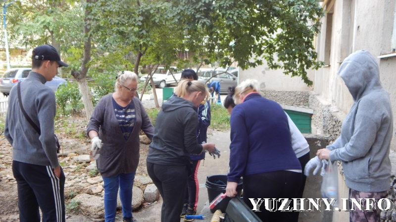 Сегодняшний выходной для жильцов многоэтажки по ул. Строителей, 9 стал поводом собраться вместе и провести небольшой субботник, приуроченный к предстоящему Дню города. С самого утра в ОСМД жильцы выстроились в очередь за инвентарем, каждый выбрал для себя локацию и принялся убирать двор, красить подъезды и бордюры, обрабатывать клумбы. По словам жильцов, для них подобные мероприятия – в радость, ведь это к тому же еще и повод увидеться с соседями и пообщаться.