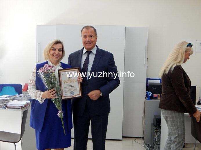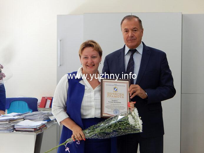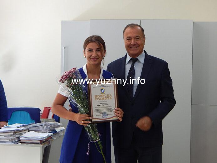 Коллектив Южненского ЦПАУ сегодня пришел поздравить с праздником городской голова Владимир Новацкий, управделами исполкома Лариса Шегида и заместитель городского головы – начальник управления образования Елена Баранецкая. Владимир Новацкий обратился к присутствующим с приветственным словом, поблагодарил за их труд и вручил почетные грамоты. Так, за достижения в работе, ответственное отношение к выполнению служебных обязанностей и по случаю профессионального праздника награды получили Олеся Сакович, Татьяна Тройняк и Ольга Тимофеева. Администраторы рассказали, что в связи с созданием Южненской ОТГ, работы прибавилось, теперь предоставлять услуги необходимо большему количеству людей, но несмотря на загруженность, сотрудники Южненского ЦПАУ подчеркивают, что свою работу очень любят и всегда готовы проконсультировать и помочь жителям громады.