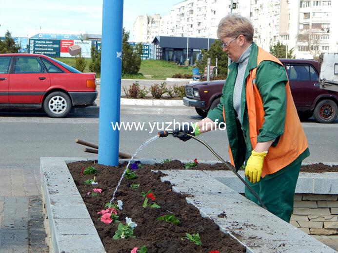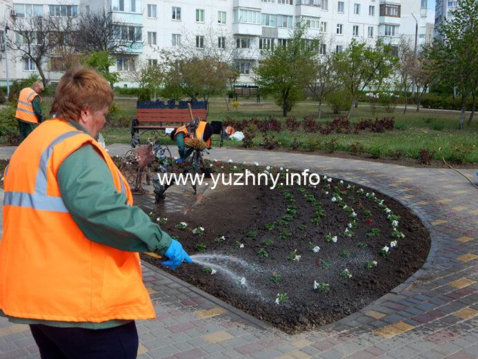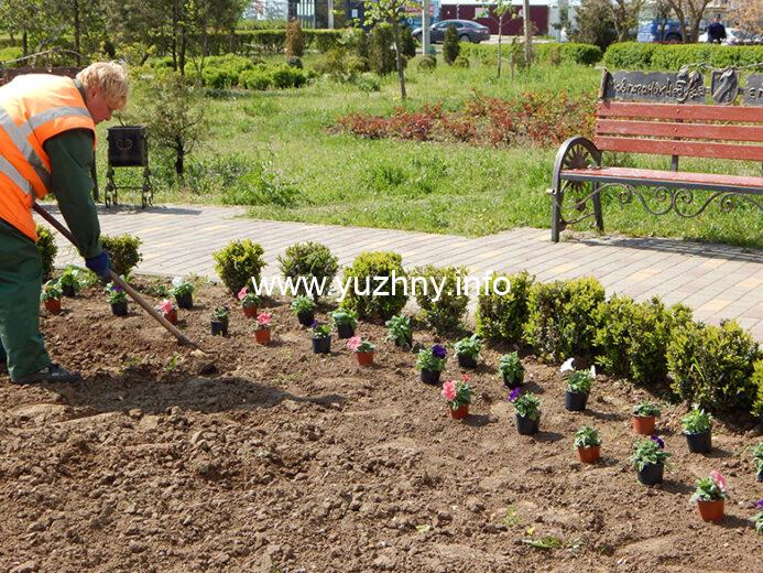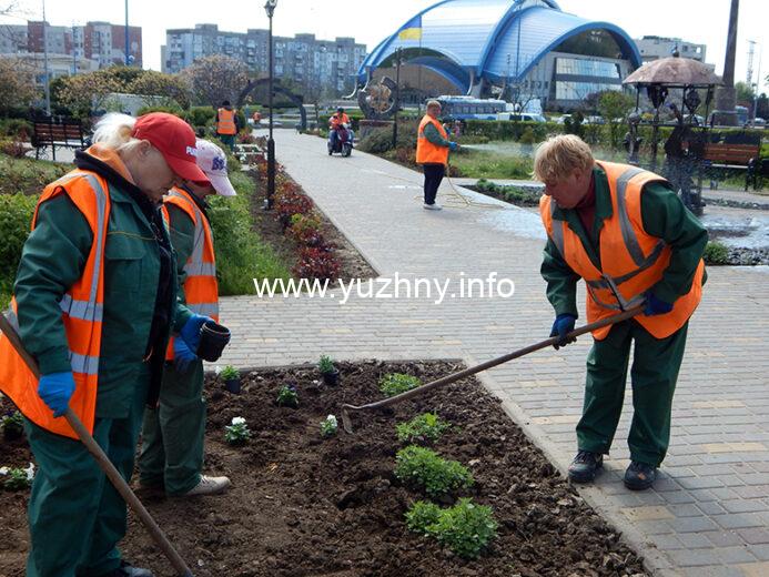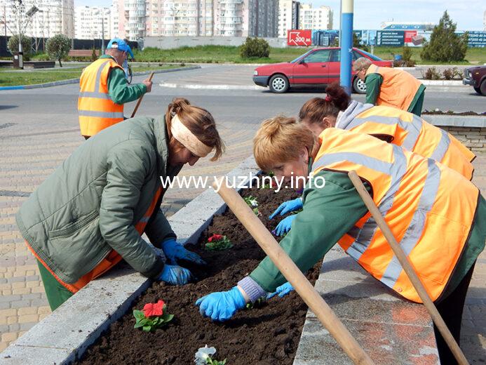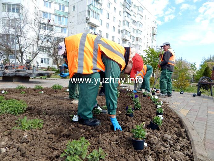 С наступлением благоприятных погодных условий работники коммунального предприятия «Экосервис» приступили к комплексному благоустройству Южного. С самого утра 6 мая озеленители приступили к высадке весенних цветов на клумбах в центре города – на площади Победы, в сквере кованых фигур, а также возле памятника Защитникам Украины, где предусмотрен регулярный полив. Как сообщила Yuzhny.info мастер КП Елена Косачева, в целом планируется высадить около четырех тысяч цветов. Все они разноцветные. Озеленители в процессе высадки петунии стараются создать разные композиции, согласно цветовой гамме.