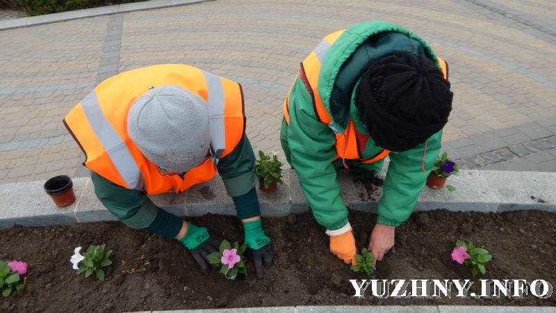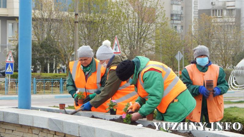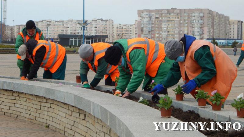 С наступлением благоприятных погодных условий работники КП «Экосервис» приступили к комплексному благоустройству Южного. Сегодня, 14 апреля, озеленители начали высадку однолетних цветов на клумбах. Весенними цветами в первую очередь украсят центральную часть города, а уже потом – сквер кованных фигур и территорию возле памятника Защитникам Украины. На предприятии закупили герань (1 000 шт.), петунью (1 000), ипомею (300), лобелию (90), плющ (100). В мае планируется также украсить город хризантемами (285 шт).