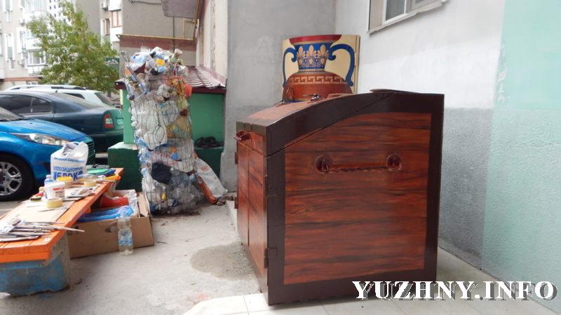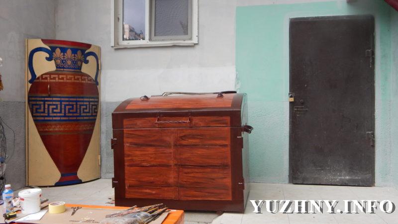 В самом большом жилом доме города по ул. Химиков, 14 начались ремонтные работы по облагораживаю парадных. Старые, потрескавшиеся и неприглядные подъезды совсем скоро обретут новый внешний вид. Как сообщил «Yuzhny.info» основатель строительной компании «Югинвест» Генрих Шталь, планируется сделать роспись стен нескольких подъездов и прилегающих подвальных помещений, а также установить рядом архитектурные формы. Одна из таких уже радует глаз возле углового подъезда высотки, ее роспись в античном стиле на завершающем этапе. Планируется, что своего рода металлическая ширма будет служить местом для хранения неприглядной сетки для сбора пластика, а большой сундук станет местом сбора стекла. Идей у строительной фирмы – множество, а цель одна – угодить жителям и сделать их проживание в доме комфортным. Генрих Шталь убежден, что другие дома Южного должны взять пример и тоже начать приводить в эстетический вид парадные многоэтажек.