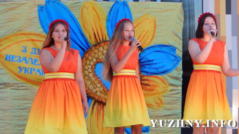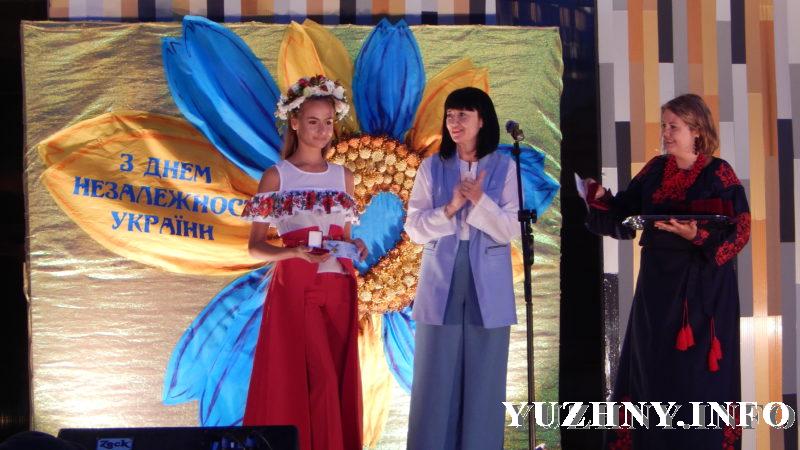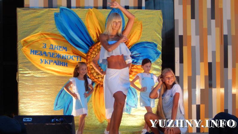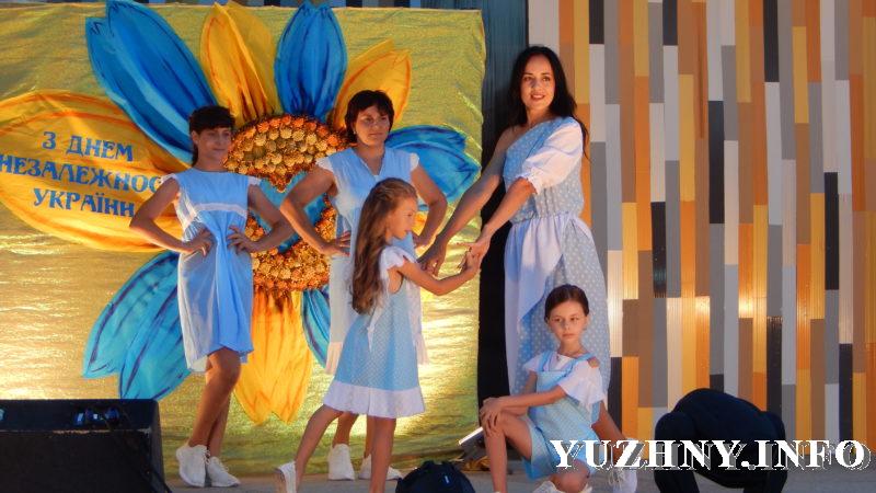 29-ю годовщину со Дня Независимости Украины 24 августа в нашем городе отметили праздничной программой на крыльце Дворца культуры «Дружба». Организаторы старались, чтобы празднование прошло с соблюдением всех необходимых мер, направленных на предотвращение распространения коронавируса. Поэтому впервые на подобных мероприятиях для публики вынесли стулья, расставив их на дистанции. Началась программа с вокальных поздравлений от коллективов ДК. Далее под яркий свет софитов на сцену с показом модной коллекции одежды вышли участники модельной агенции «Dreams and Emotions», а также их родители. Южненские модели сорвали громкие аплодисменты у публики, так как их дефиле в виде театрализованных постановок вызвало восторг у зрителей. Некоторые модели по случаю праздника даже удостоились почетных наград, которые им вручила начальник управления образования, культуры, спорта и молодежной политики Южненского горсовета Надежда Конопацкая. Она также отметила наградами и руководство модельной школы. Не обошлось и без развлечений для самих зрителей, ведущие вечера Алена Назарук и Вероника Дариенко вовлеки южненцев и гостей города в викторину. В этом и заключался сегодняшний флешмоб «Украина – это мы». За каждой буквой слова «Украина» стоял вопрос на знания истории нашей страны и быта украинцев. Организаторы устанавливали на сцене определенную букву, ответив правильно на вопрос, связанный с ней, участники выходили на крыльцо и становились рядом. Завершением праздничной программы стал концерт коллективов Дворца культуры.