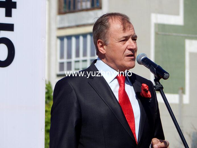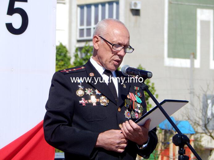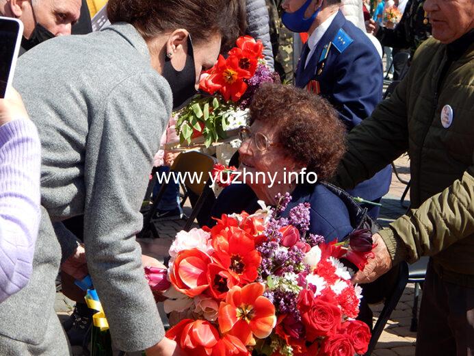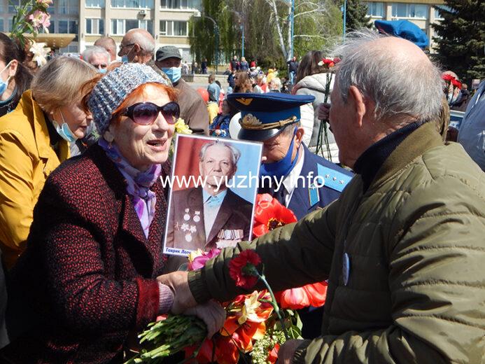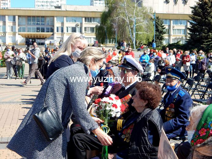 “Хочу поздравить всех с этим великим праздником Победы! Стало доброй традицией в этот день, 9 мая, собираться тут на площади Победы, чтобы почтить память тех, кто отдал свою жизнь за Родину. Нет сегодня ни одной семьи в Украине, которой бы не коснулась трагедия этой войны. Ветераны всегда остаются для нас образцом служения Родине, своему народу, лучшим человеческим идеалам. Своим примером они вдохновляют наших воинов, которые сегодня отстаивают единство Украины, наше право на независимость, демократию, свободу… Сегодня в нашей громаде осталось всего пятеро участников боевых действий, из них на нашем празднике присутствуют Михаил Федорович Емельянов и Александра Ивановна Лужанская. Хочется поздравить их и вручить цветы!” – Владимир Новацкий, Южненский городской голова.