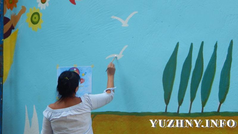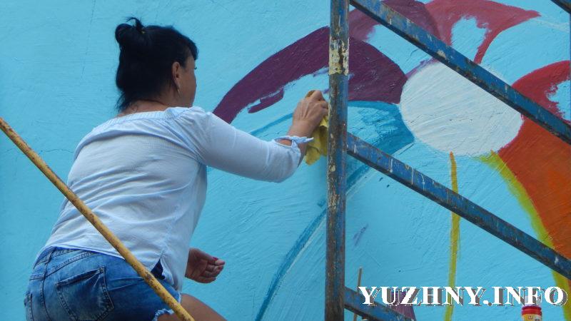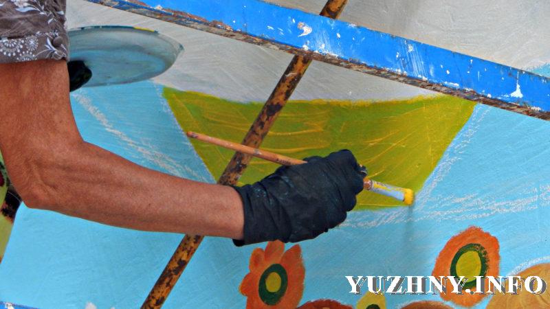 «В Южном есть много художников, которые готовы сотрудничать с ОСМД. Лариса Демьянишина согласилась нам помочь, как волонтер, сразу откликнулась. Это огромный труд, да и времени на такую работу уходит немало. Мы планируем с ее помощью украсить полностью все сооружение», – рассказала Галина Жарова.