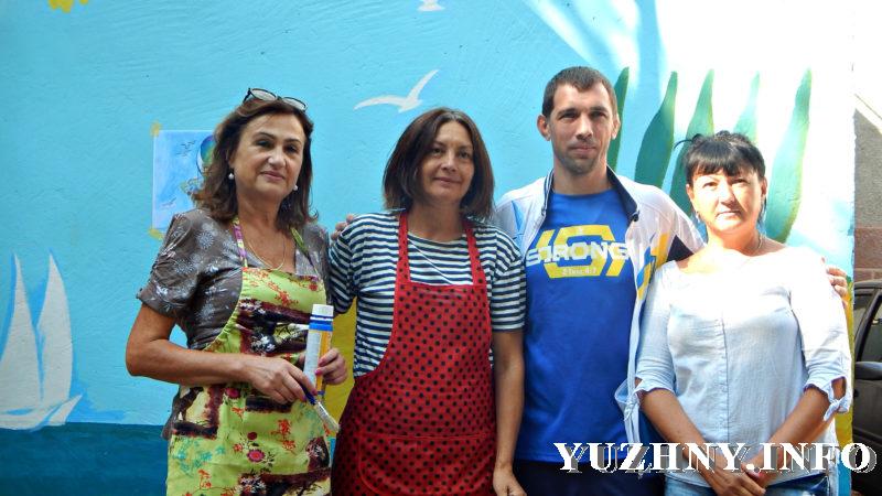 «Постепенно есть в планах разрисовать сооружение полностью. Как быстро это удастся сделать зависит от погоды. Возможно, мы успеем еще одну стену разукрасить. Есть задумка изобразить яхты на море, ведь в этом доме живет много людей, работающих в порту. На другой стене хотим сделать легкие и нежные одуванчики, но пока мы не утвердили окончательные эскизы, будем советоваться еще с жильцами. Тематика первого рисунка была выбрана не случайно, ведь рядом расположена детская площадка, да и в целом Южный – город, где проживает очень много детей. Многие отмечают, что здесь очень комфортное место для их воспитания и жизни. Мы рисуем наш город, на изображении воздушного шара написано «Южный» и адрес дома «Строителей, 9», это как визитка данного мурала. Я автор этого рисунка, много работаю именно в этой тематике, оформляю также книги, а идея пришла быстро, навеяло тем, что окружает меня: море, детвора. Пригласил меня председатель дома и его супруга Галина, они очень активные, а также моя подруга Любовь Будковская рассказала, что во дворе этого дома очень много делается для благоустройства и есть такая идея по созданию мурала, вот я откликнулась», – рассказала Лариса Демьянишина.