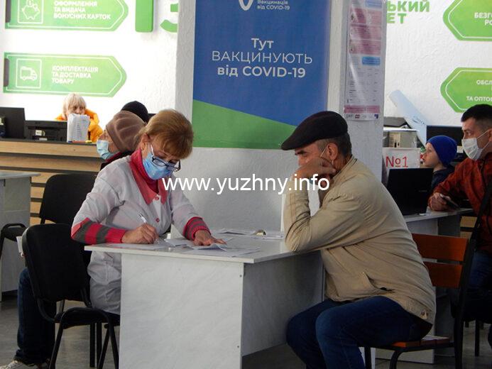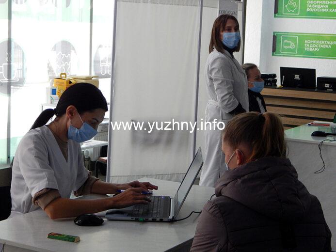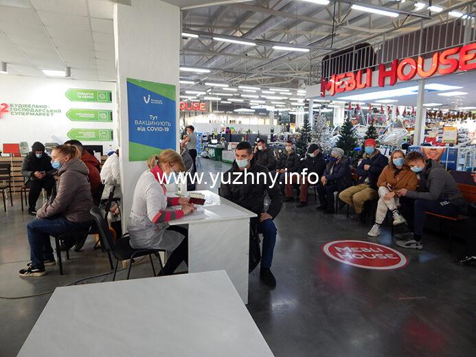 Каждую субботу, начиная с 23 октября, в помещении строительного супермаркета «33 квадратных метра» проходит вакцинация от коронавируса. Сегодня, 13 ноября, желающих сделать прививку было немало, при входе в магазин даже образовалась небольшая очередь, люди начали приходить за час до открытия временного пункта вакцинации. В помещении определено несколько зон: зона регистрации; зона приема, где пациент мог пообщаться с врачом, измерить температуру, задать волнующие его вопросы; зона вакцинации, две зоны ожидания. Как сообщила Yuzhny.info врач-терапевт поликлиники Татьяна Безкостюк, вакцинироваться приходят не только жители Южного, но и близлежащих населенных пунктов. Она также рассказала, что на выбор, как и ранее, предоставлено три вида вакцины: CoronaVac, AstraZeneca, Pfizer. Вскоре планируется получить еще одну вакцину.
