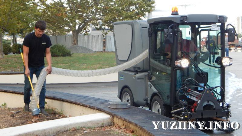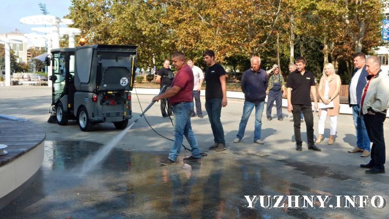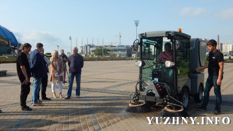 В Южный сегодня, 25 сентября, доставили одну единицу спецтехники фирмы Karcher для уборки городских территорий. Региональные представители компании-поставщика продемонстрировали машину в действии, ознакомили руководство города и коммунальщиков с оснащением техники и рассказали о ее многофункциональности. Как сообщил «Yuzhny.info» заместитель городского головы и начальник УЖКХ, машина предусмотрена для уборки не только в теплую погоду, но и в зимний период. Для закупки такой спецтехники из городского бюджета было выделено 2,8 млн гривен.