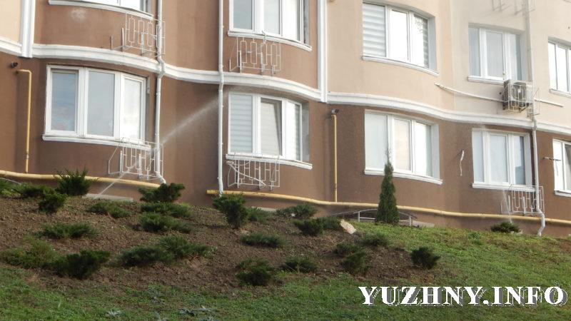 На склонах вдоль новостроек по ул. Иванова установили автоматическую систему полива. Использовать ее начнут ближе к весне, в этот же период планируется высадить новые зеленые насаждения. Ранее там уже были посажены хвоя, хризантемы и розы. Проводить благоустройство склонов вдоль пешеходной дорожки (в сторону санатория-профилактория) – идея застройщика «Югинвест», чьи новые дома там построены. В пятницу, 13 ноября, специалисты строительной компании вновь протестировали систему полива. Основатель «Югинвеста» Генрих Шталь в интервью «Yuzhny.info» рассказал, что помимо высадки новых растений, также планируется установить стилизованные лавочки вдоль пешеходной дорожки.