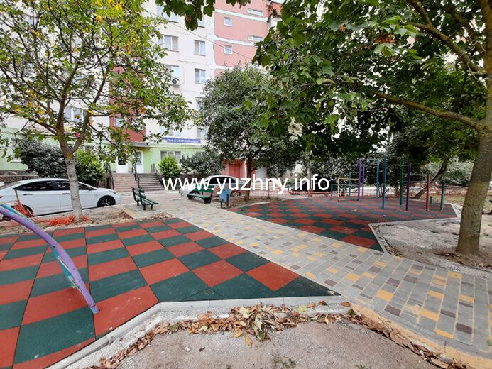 Ранее мы сообщали, что на очереди благоустройство еще одного двора. Будет проведена реконструкция территории с обустройством детской площадки между домами по проспекту Григорьевского десанта, 12 и 14 (ориентировочная стоимость ремонта 1 608,300 тысяч гривен, в том числе: проектно-изыскательские работы). Этот участок теперь тоже закреплен не за ОСМД, а за КП «Экосервис». На заседании сессии Южненского горсовета 8 апреля этого года депутаты утвердили несколько схем закрепления придомовых территорий, в частности речь идет и об этой. Председатели правлений указанных домов обратились с просьбой передать часть территорий на обслуживание городу, а именно закрепить за «Экосервисом» детскую площадку, которую за средства местного бюджета планируется отремонтировать, и участок двора, где обустроят небольшой сквер.