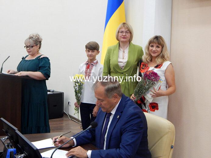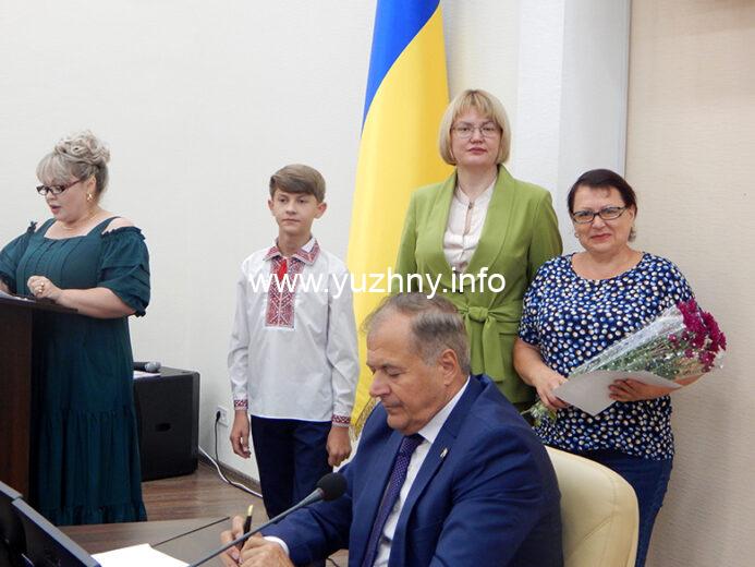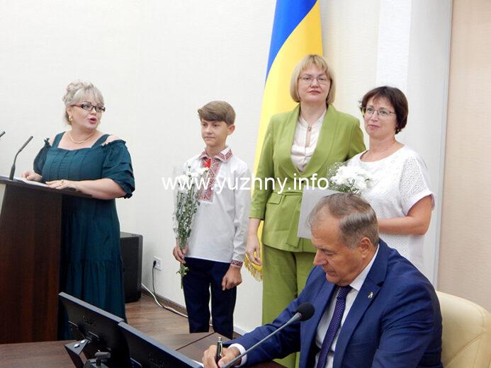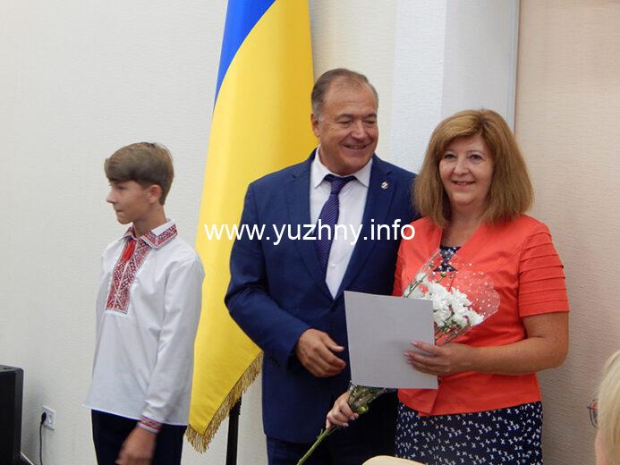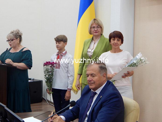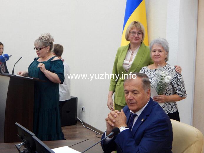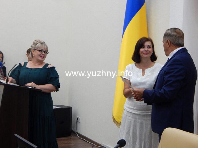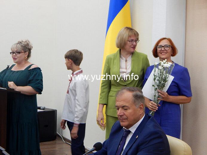 В Южненском горсовете 27 августа в рамках ежегодной педагогической конференции состоялась торжественная церемония награждения сотрудников образовательной сферы, которые работают в учреждениях нашей ОТГ. Впервые на таком мероприятии присутствовали не только южненские педагоги, но и работники детсадов и школ Сычавки, Новых Биляр. С приветственным словом к присутствующим обратился Южненский городской голова Владимир Новацкий, а также его заместитель и начальник управления образования Елена Баранецкая. Они поздравили учителей с началом нового учебного года, поблагодарили за их труд и обратились с просьбой отнестись серьезно к вопросу вакцинации. Владимир Новацкий подчеркнул, что в настоящее время все переживают непростые времена в связи с реформой в образовательной сфере и пандемией на COVID-19 и призвал сделать прививки против коронавируса, чтобы обезопасить и себя, и своих учеников.