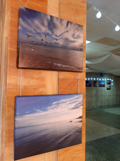 «Посмотрев фотографии Лены, стало понятно, что для ее неба и моря формата А3 недостаточно. Мы обратились в фотостудию и распечатали ее работы на баннерном материале. Фишка данной выставки еще и в том, что мы представили триптих, очень необычно смотрится», – Галина Малиновская.