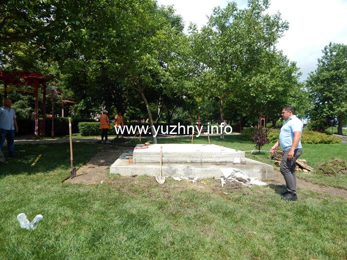 В Южном полным ходом идут строительные работы, готовится фундамент для скульптуры в виде дерева, ее установят в Китайском сквере. Как сообщили Yuzhny.info на КП «Экосервис», в связи с этим пришлось снять по периметру фундамента слой рулонной зеленой травы, сейчас коммунальщики выстилают ее в тех местах, где не хватает. Монтаж малой архитектурной формы должны завершить до конца этого месяца, но по словам строителей, успеют гораздо раньше. Напомним, что уникальную металлическую скульптуру (вес 600 килограмм, высота почти 3 метра) Южный получил в качестве подарка от города-побратима Панчжоу (Китай) в ноябре прошлого года.