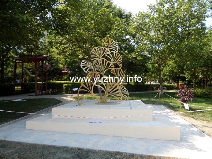 В Китайском сквере установили скульптуру в виде дерева гинкго, подаренную Южному осенью прошлого года от представителей города-побратима Панчжоу (Китай). К месту размещения малой архитектурной формы строители обустроили подходные дорожки. В настоящее время скульптуры огорожена, планируется еще установить информационную табличку, подключить подсветку. Ранее мы сообщали, что коммунальщикам пришлось снять по периметру фундамента слой рулонной зеленой травы. Вес уникальной металлической скульптуры – 600 килограмм, высота почти 3 метра.